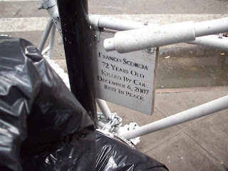 A sobering but beautiful street memorial chained to a lamppost at the corner of 40th Ave & Broadway
