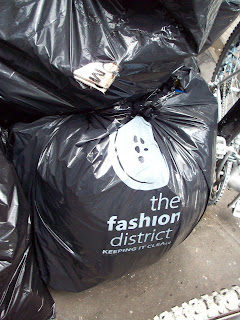 Dig the snazzy Fashion District trash bags. I live in Washington Heights – why don’t we get designer trash bags like the Fashion District? HMMMmmmmmmm?